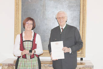 Für ihr jahrzehntelanges ehrenamtliches Engagement um und für das unterfränkische Schützenwesen wurde unserer 1. Bezirksschriftführerin Vera Nätscher durch S.K.H. Herzog Franz von Bayern das „goldene Protektorabzeichen“ verliehen.